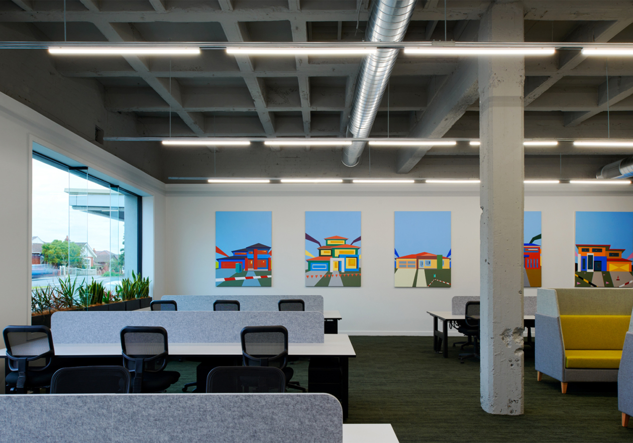 This project was engaged by Our Community Group – a company offering information technology support, training, and tools to not for profit, social enterprise and government organisations – to reimagine and transform an existing space into what would become the company’s colourful new co-working office.