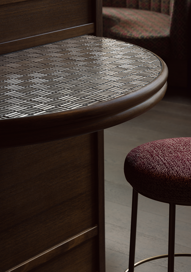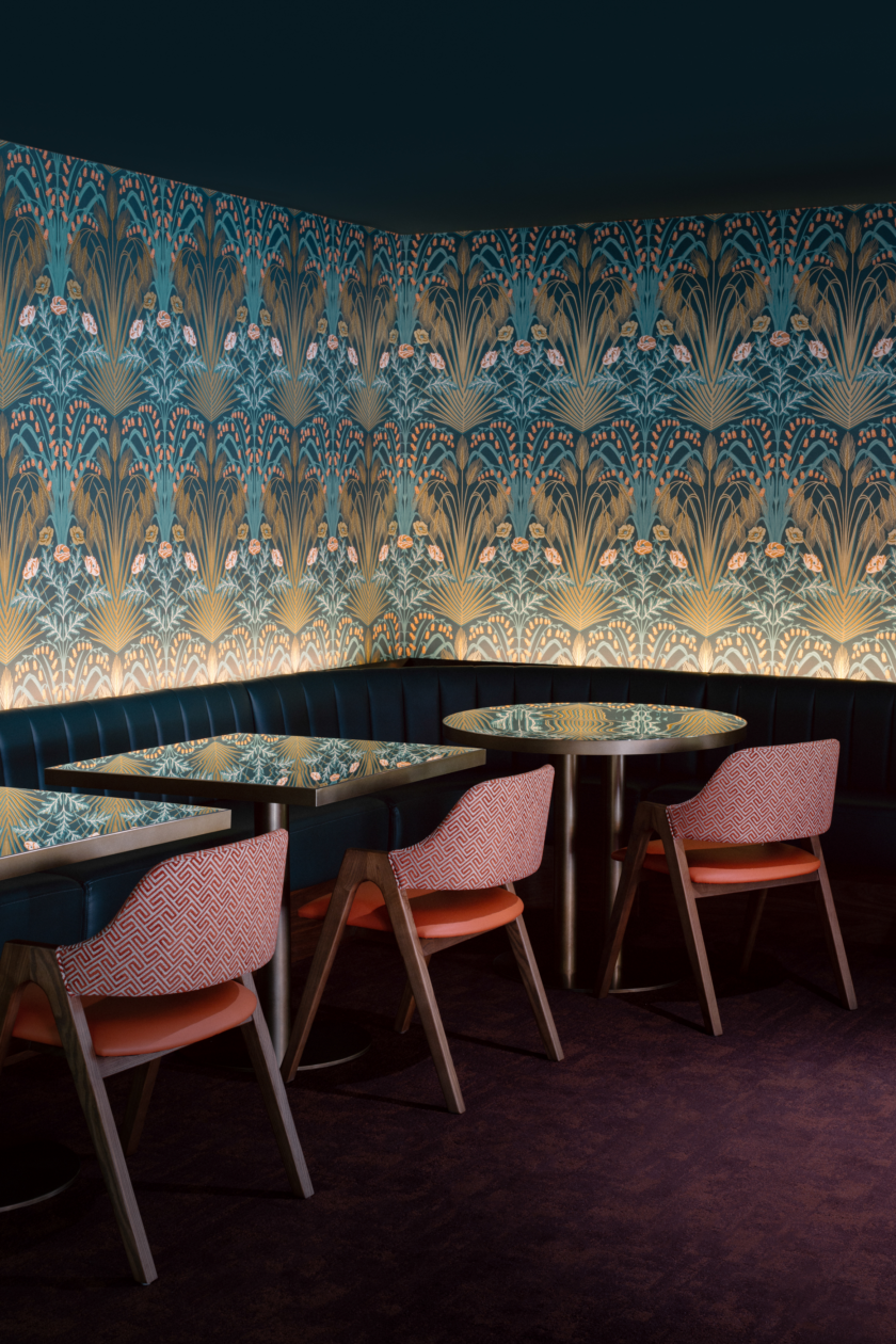 Both bars have been designed as key features within the restaurant. On the upper level, the bar strategically features mirror and polished stainless steel to create dimension and movement. On the ground floor, deep green, glossy tiles have been used to accentuate the bar and bring presence and interest to the kitchen. A diverse collection of furniture, vibrantly patterned upholsteries and striking colour schemes, tell it's story. This project is a wonderful addition to Cornerstone International Solutions’s hospitality portfolio and its success is the result of a close-knit collaboration with the client and collaborators, all working together to breathe life into the unique it's concept.